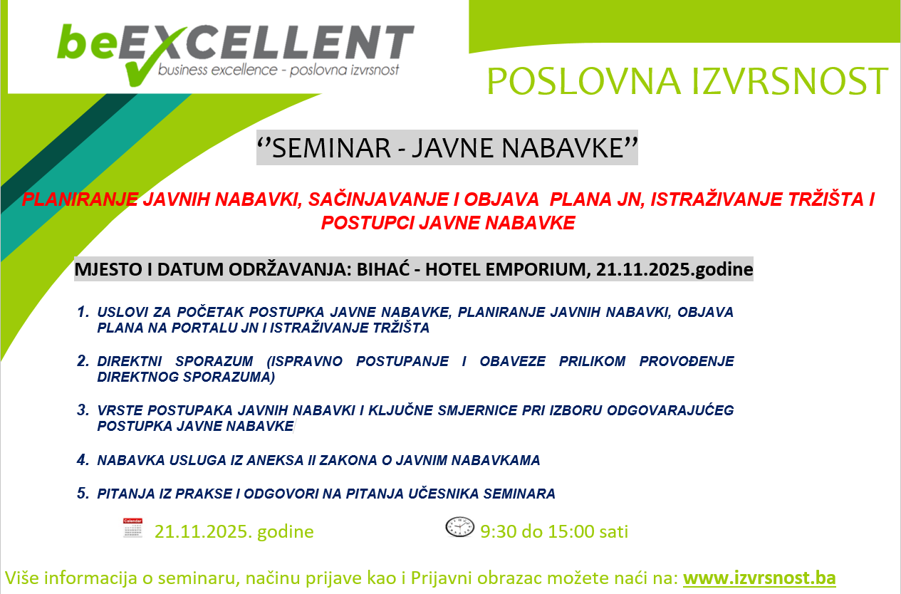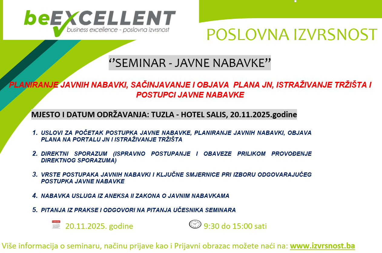 Iniciranje i promicanje u području ostvarivanja i unaprjeđenja poslovne izvrsnosti kroz različite oblike organizovanja i povezivanja.