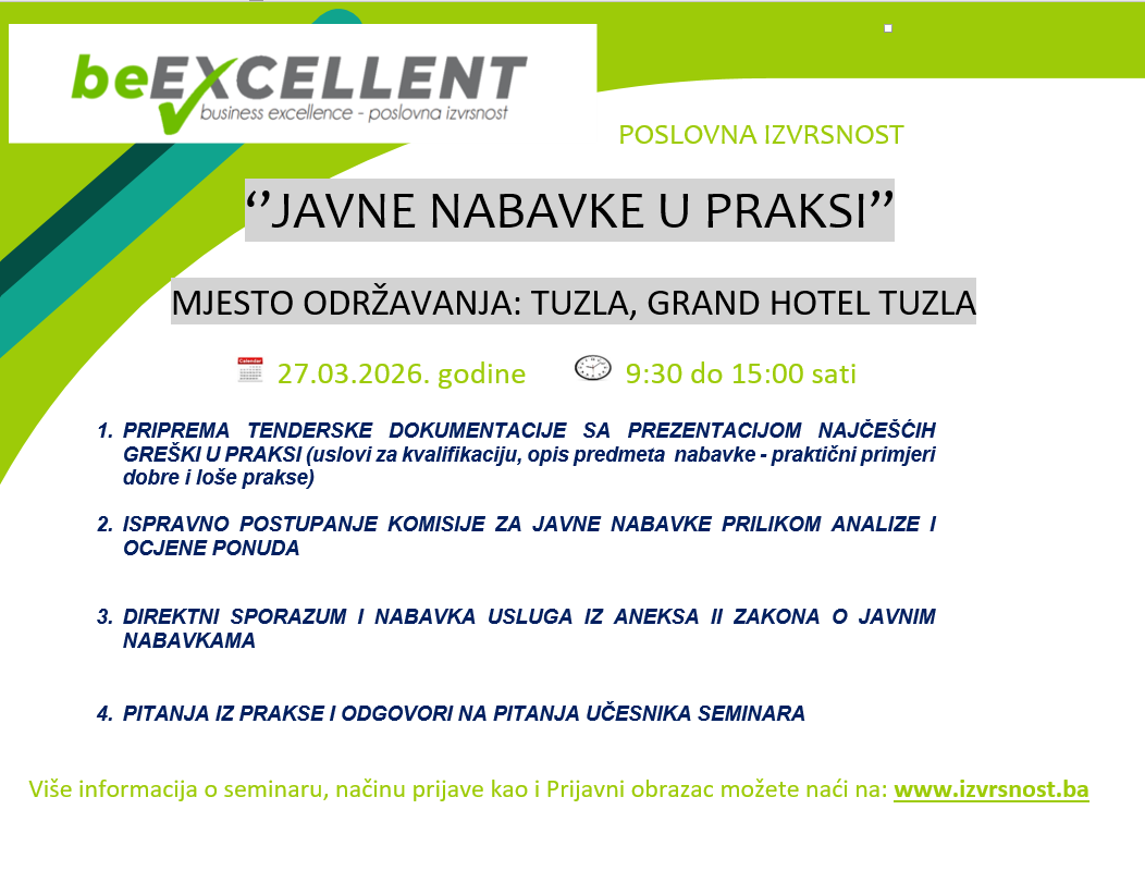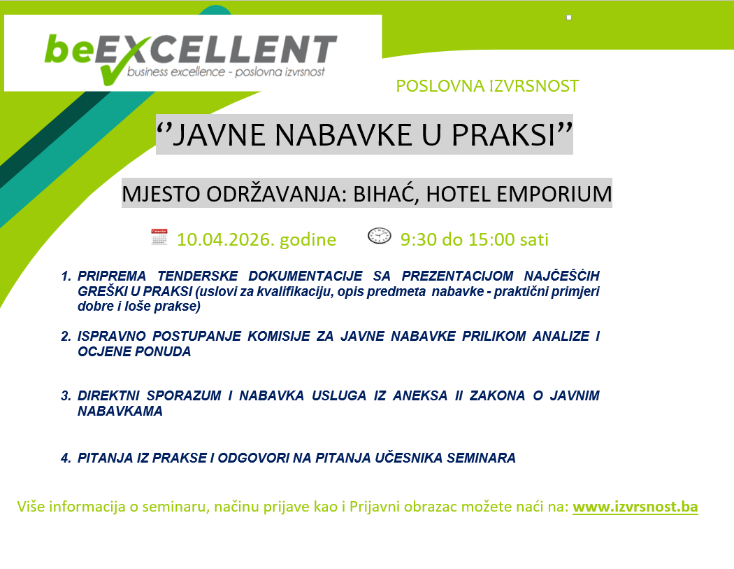Iniciranje i promicanje u području ostvarivanja i unaprjeđenja poslovne izvrsnosti kroz različite oblike organizovanja i povezivanja.